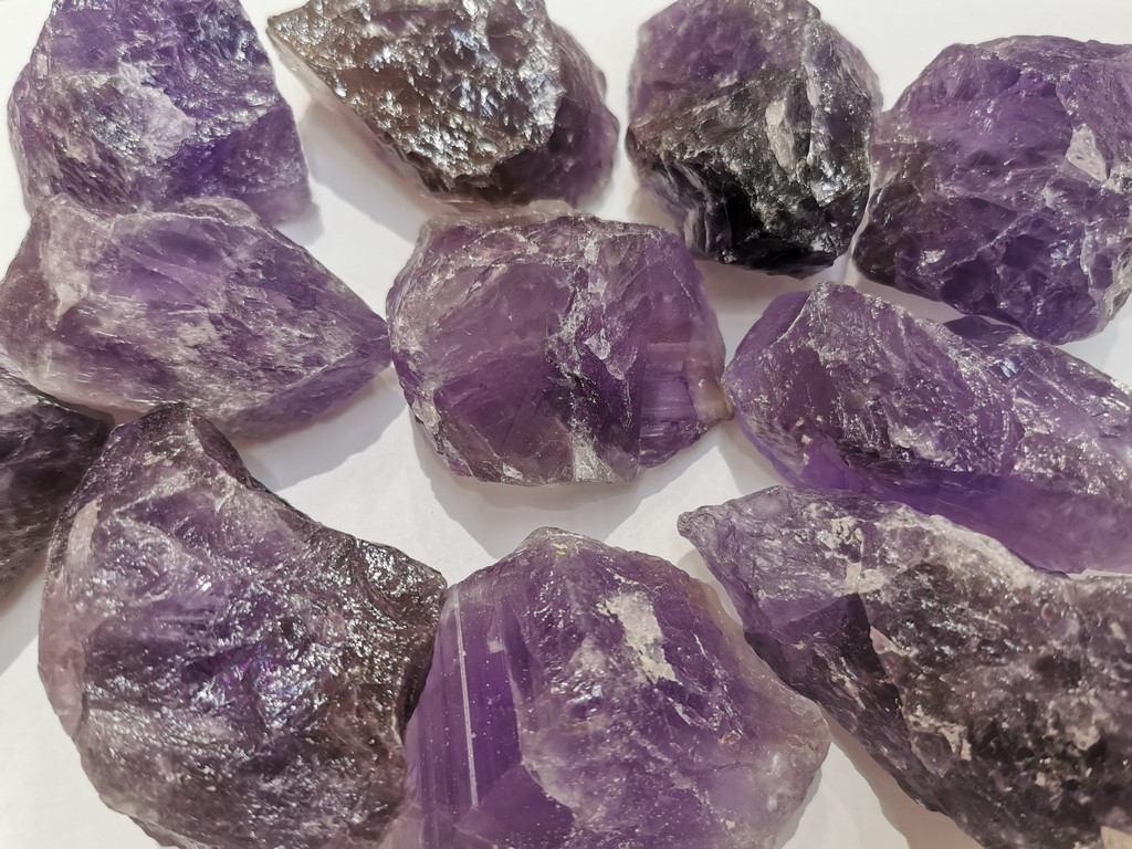 Ametist kristali iz nalazišta u Brazilu. Mali ulomci sirovog, neobrađenog kamena, svijetlo ljubičastih su nijansi boja. Ovakvi kristali služe za Feng Shu energetsko pročišćavanje prostora, kristaloterapije ili izradu eliksira.