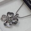 Online prodaja ogrlice sa privjeskom u obliku cvijeta sa Swarovski kristalima, prekrasnih kristalno-srebrnih boja te prelijevajućih tonova. Ures je napravljen od četiri srca, ukupne veličine 26 x 22 mm. Svaki kristal veličine je 10 x 10 mm. Lančić je debljine 1,5 mm te je prilagodljive duljine. Zakopčava se standardnom karabin kopčom.