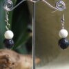 Ove posebne naušnice ručne izrade rese dva prirodna minerala - Vulkanska lava i bijeli Koralj. Načinjene su od dvije jednostavne perle koje se diče svojim prirodnim izgledom.